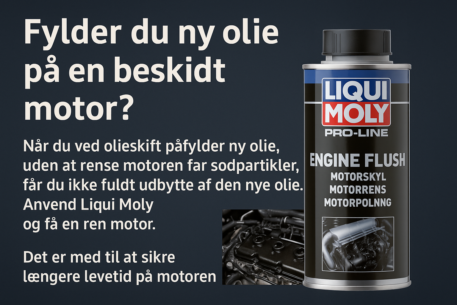 Hos RKA Service bruger vi Liqui Moly Engine Flush, som er udviklet til at rense effektivt uden at skade pakninger eller motorkomponenter.